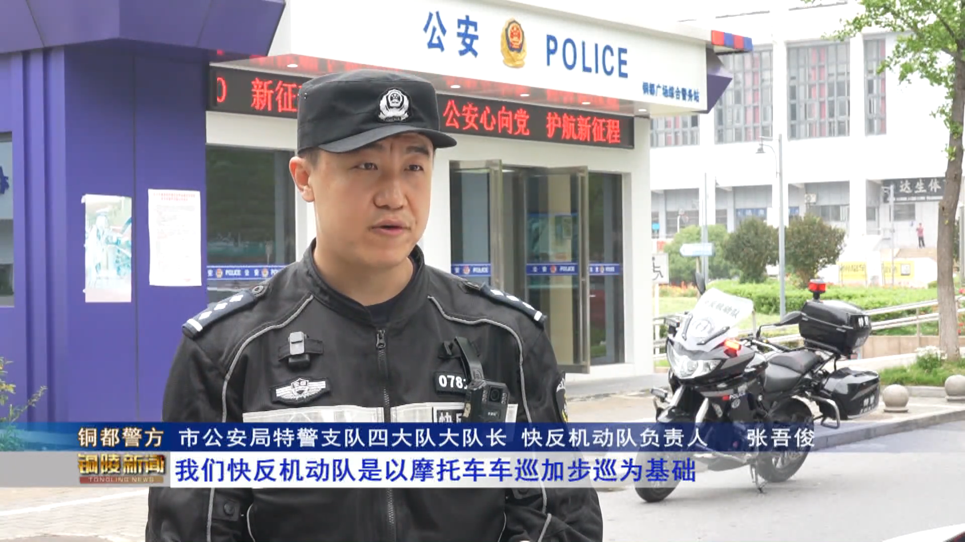 市公安局特警支队四大队大队长 快反机动队负责人 张吾俊:我们快反机动队是以摩托车车巡加步巡为基础,依托城市4个综合警务站和“135”防控圈,实现快速到达、先期处置、巡逻防控、服务群众,增加见警率、管事率。