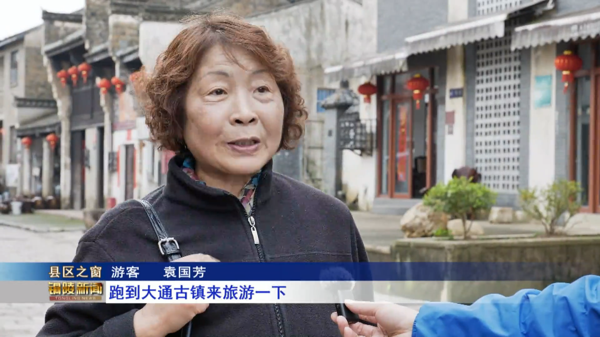 游客 袁国芳:正好是春天到了,我们从上海来,跑到大通古镇来旅游一下,感觉这里的空气好,江边的风景也蛮好的,心情很舒畅。