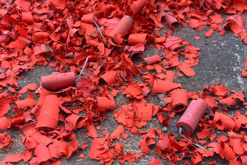 ▲注意:不要去捡刚落地还未炸响的爆竹,以防被炸伤。