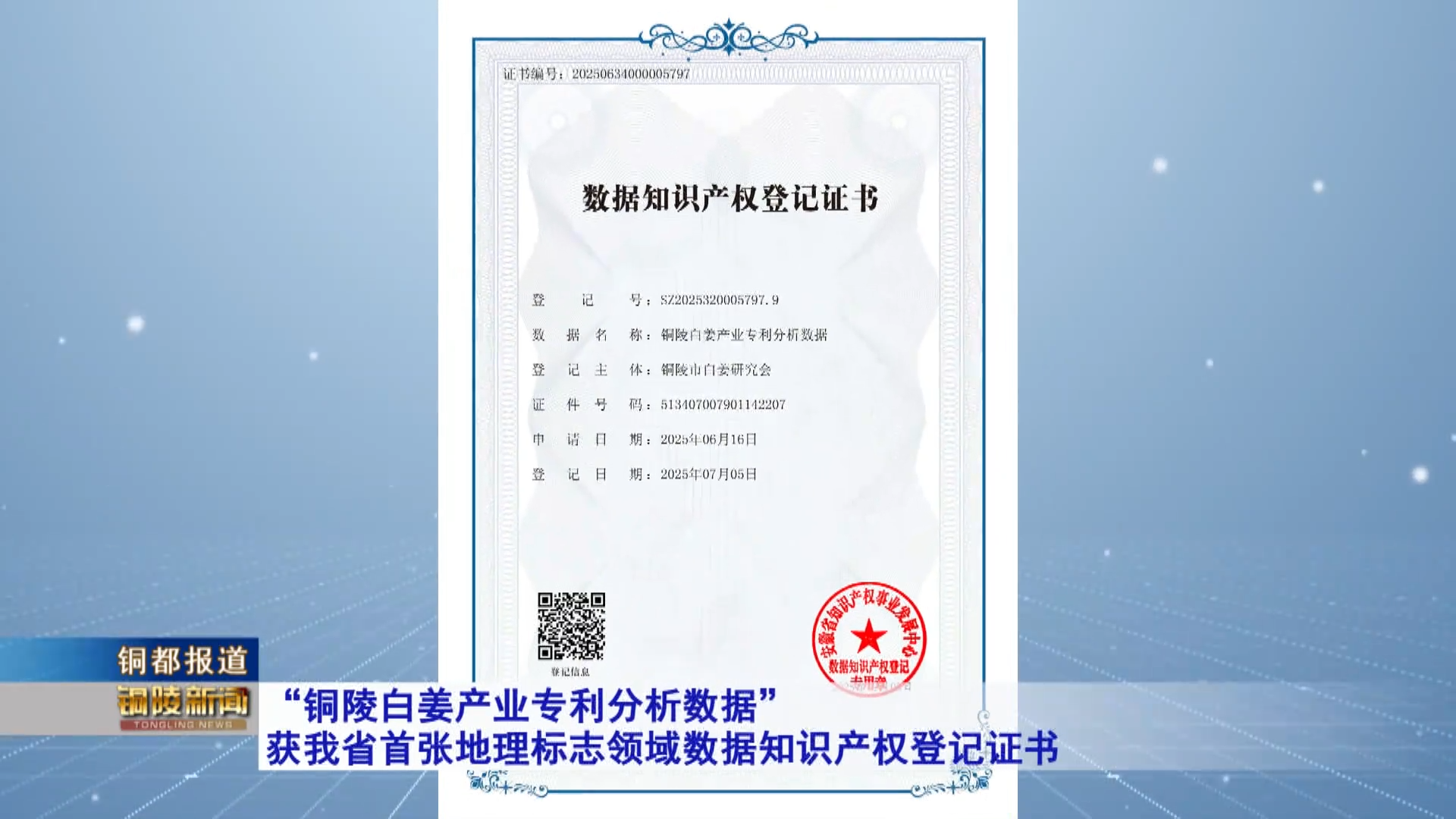 “铜陵白姜产业专利分析数据”获我省首张地理标志领域数据知识产权登记证书