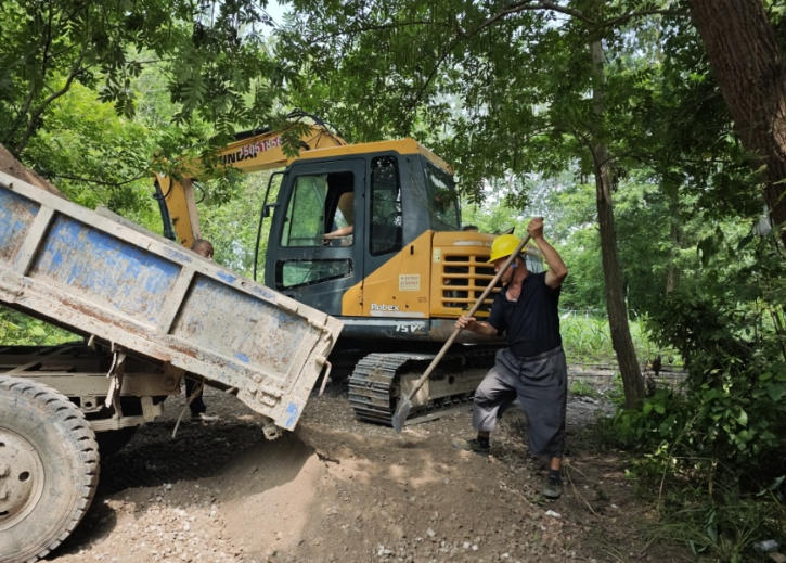 盛夏时节,记者来到铜陵市枞阳县汤沟镇龙堤村机耕路建设现场,只见工程机械正在紧张运转,一旁的工人们挥锹铺石,一条新路在绿色的田野间蜿蜒伸展。