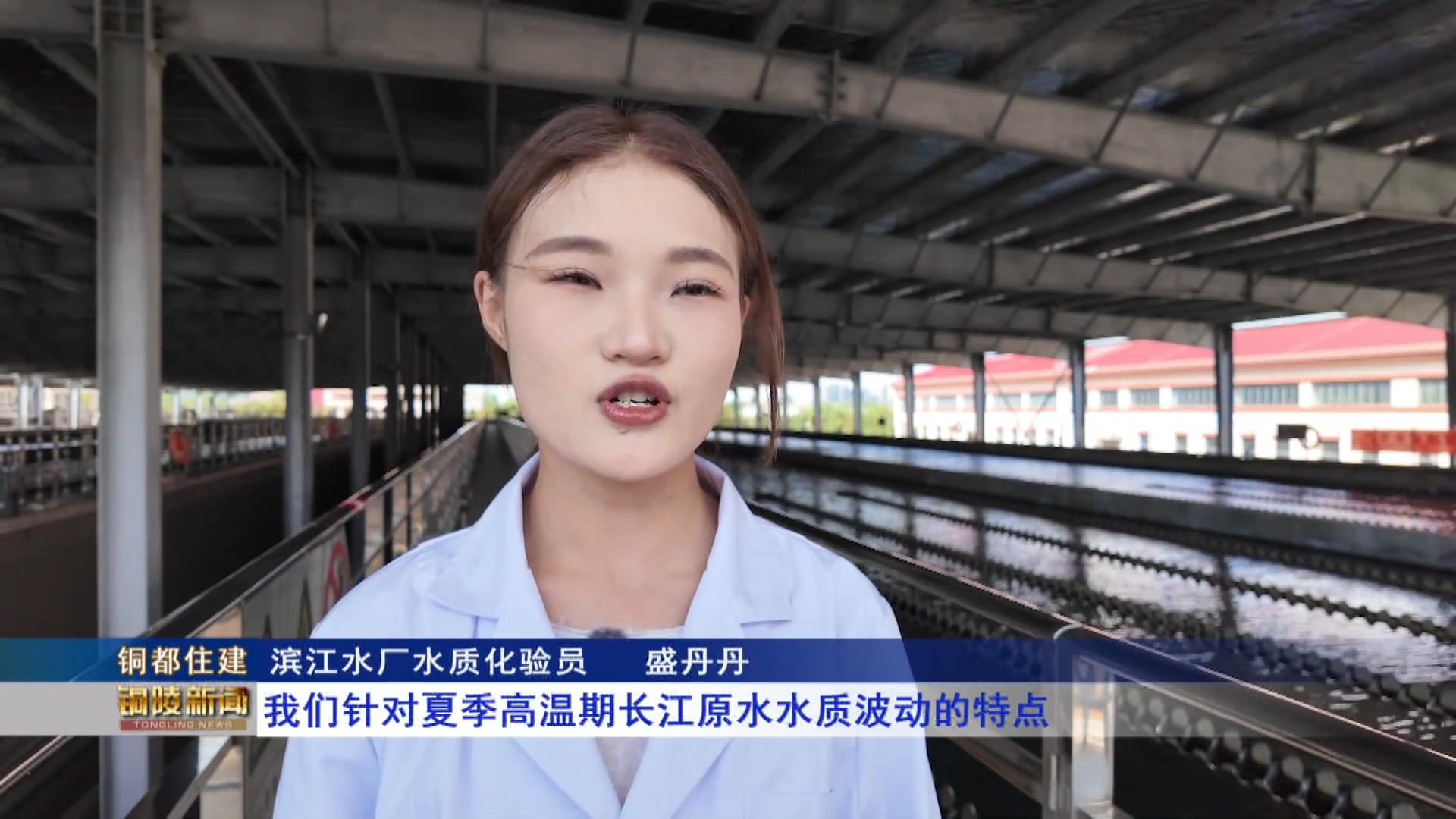 滨江水厂水质化验员   盛丹丹:我们针对夏季高温期长江原水水质波动的特点,在实时水质监测的基础上,加大了对原水、工艺水和出厂水的人工检测频次,并对我们相关水样进行了十多个项目的常规项目分析检测,确保水质优良。