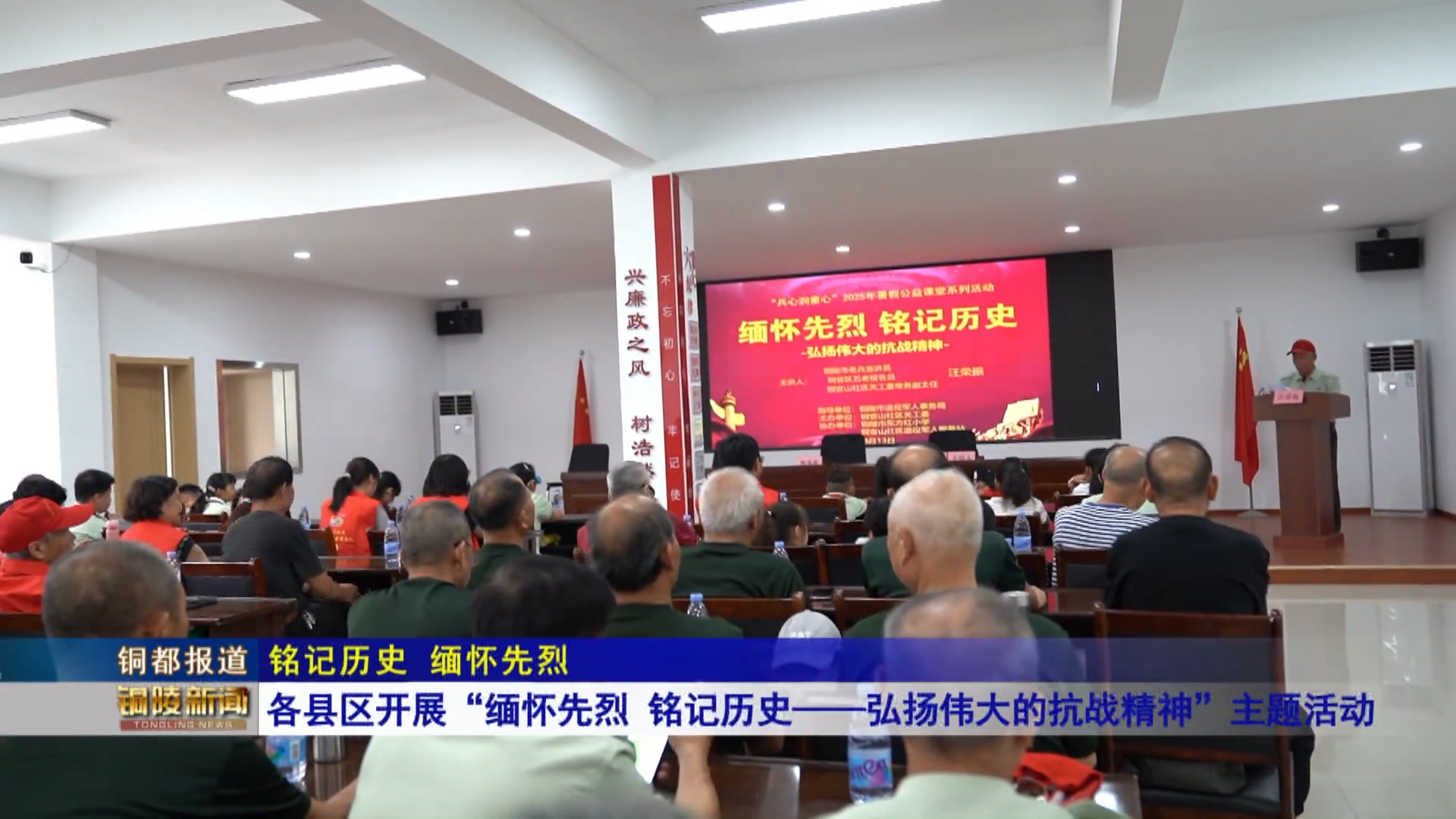 本次活动由市退役军人事务局、铜官区关工委等主办,还集体观看了纪念全民族抗战爆发88周年纪录片,表达对抗日先烈的深切缅怀,以史为鉴,守护来之不易的和平与安宁。