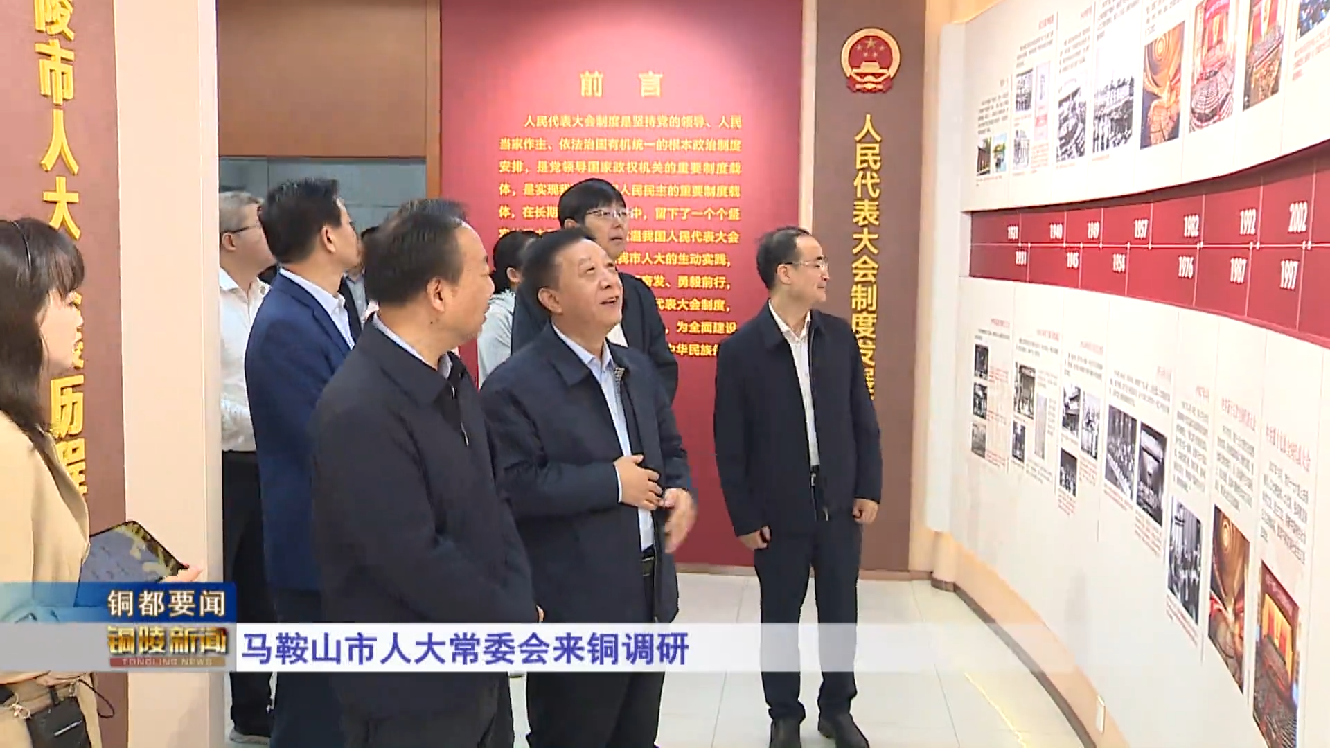 昨天,马鞍山市人大常委会主任钱沙泉率部分驻马鞍山的省人大代表和马鞍山市人大代表来铜,就人大代表履职平台建设、产业高质量发展与铜文化传承创新等工作进行考察调研。市人大常委会主任张梦生、秘书长沈永平陪同。