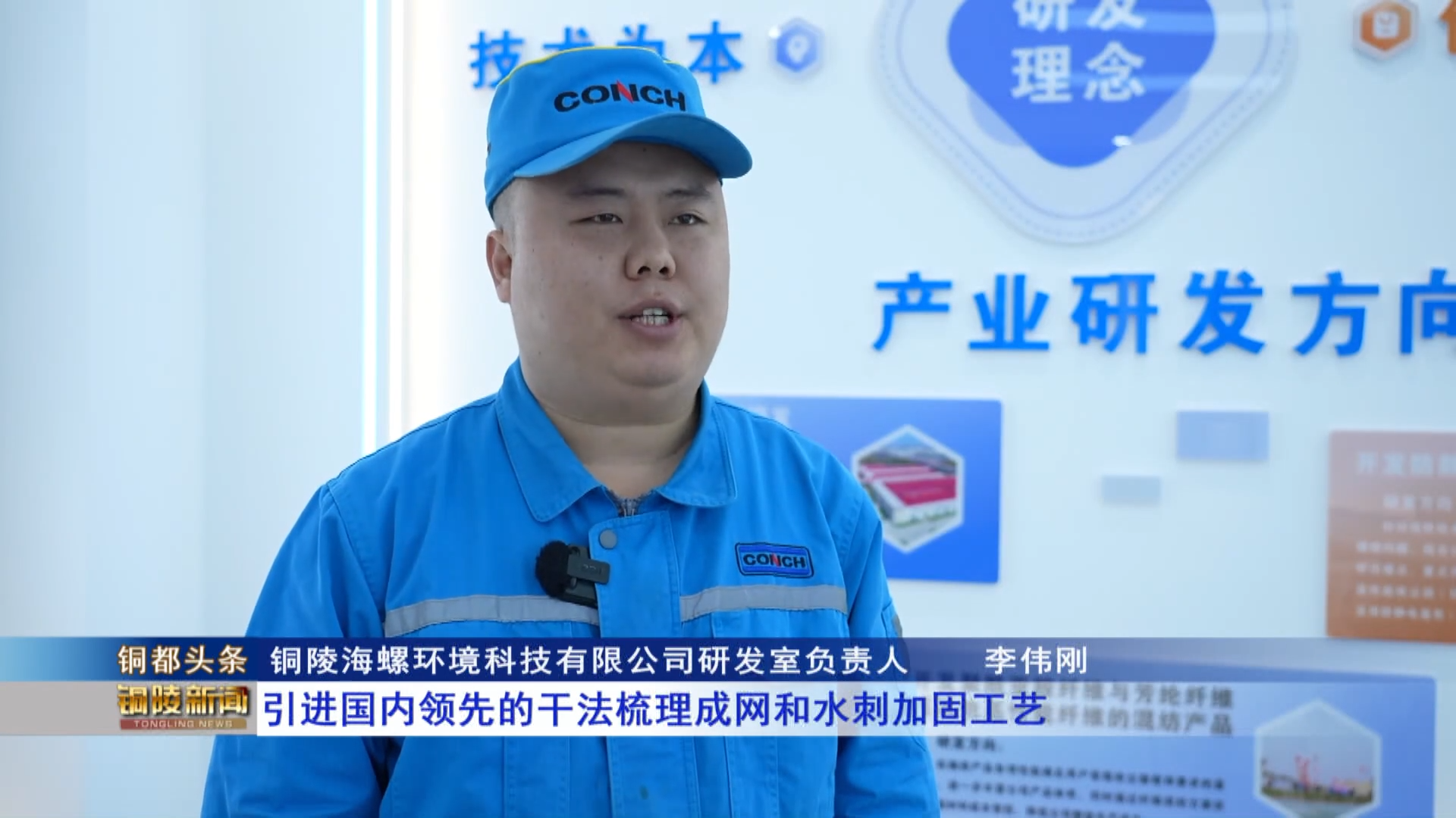 铜陵海螺环境科技有限公司研发室负责人    李伟刚:引进国内领先的干法梳理成网和水刺加固工艺,现在生产效率比传统设备提升2倍多,产品过滤性能和能耗指标均达到行业领先水平。接下来,我们将瞄准高端环保滤料市场持续攻关,研发更具竞争力的产品,协助企业拓展外部市场、提升品牌影响力,让科技创新真正成为发展硬支撑。