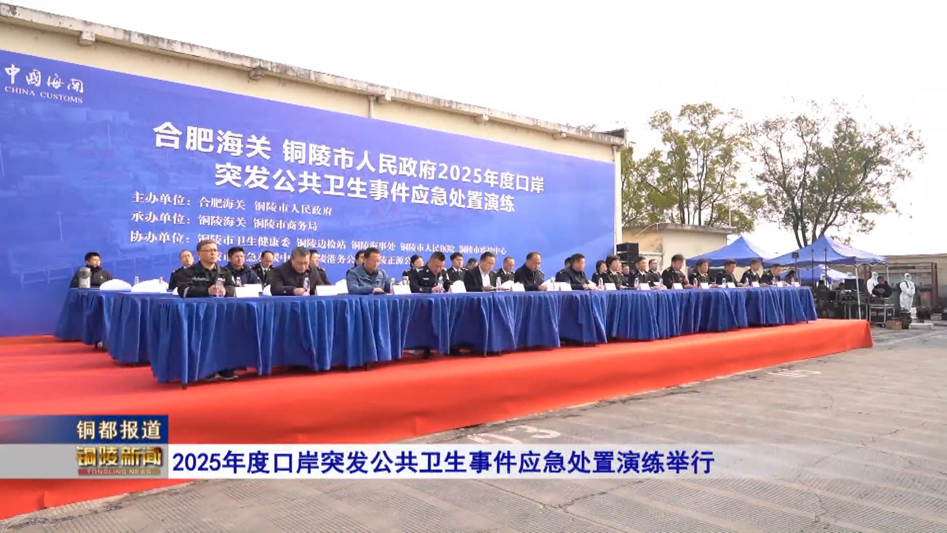 12月25号,由合肥海关、市政府指导,铜陵海关、市商务局联合承办的2025年度口岸应急处置演练在铜陵口岸举行。本次演练设置场景为:铜陵口岸一艘入境货轮突发船员腹泻,联防联控单位按照机制开展相应处置。演练集结海关、商务、海事、卫健等多部门应急力量,通过演练健全了口岸联防联控机制,提升多部门协同作战能力。下一步,铜陵口岸将总结经验、补齐短板,持续筑牢国门公共卫生安全“铜墙铁壁”。