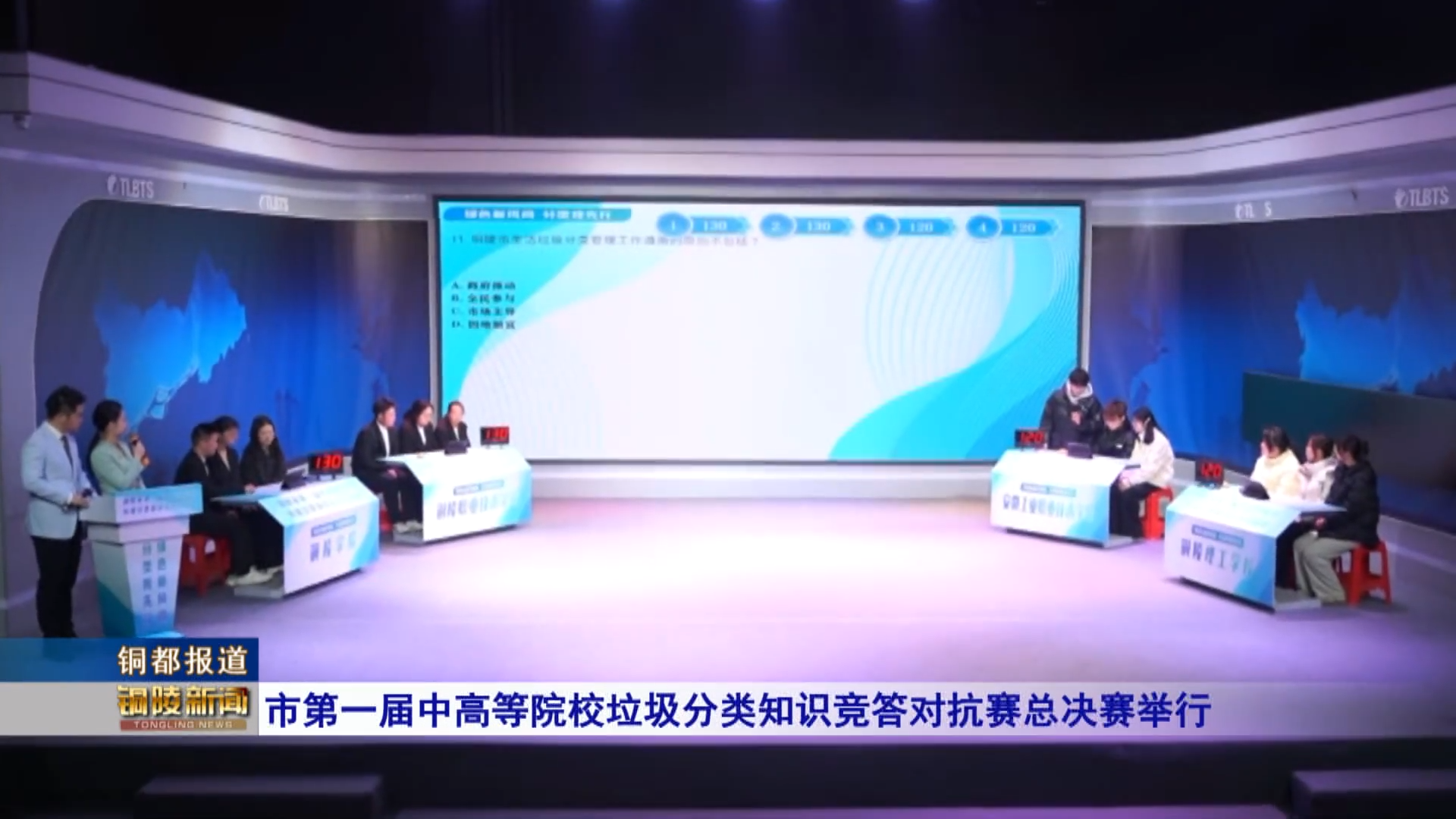 1月4号,“绿色新风尚 分类我先行”市第一届中高等院校垃圾分类知识竞答对抗赛总决赛在我台演播厅圆满落幕,来自全市四所中高等院校的选手们历经必答、抢答、风险题等多轮激烈角逐,最终决出前三名。副市长汪发进出席活动并为获奖选手颁奖。