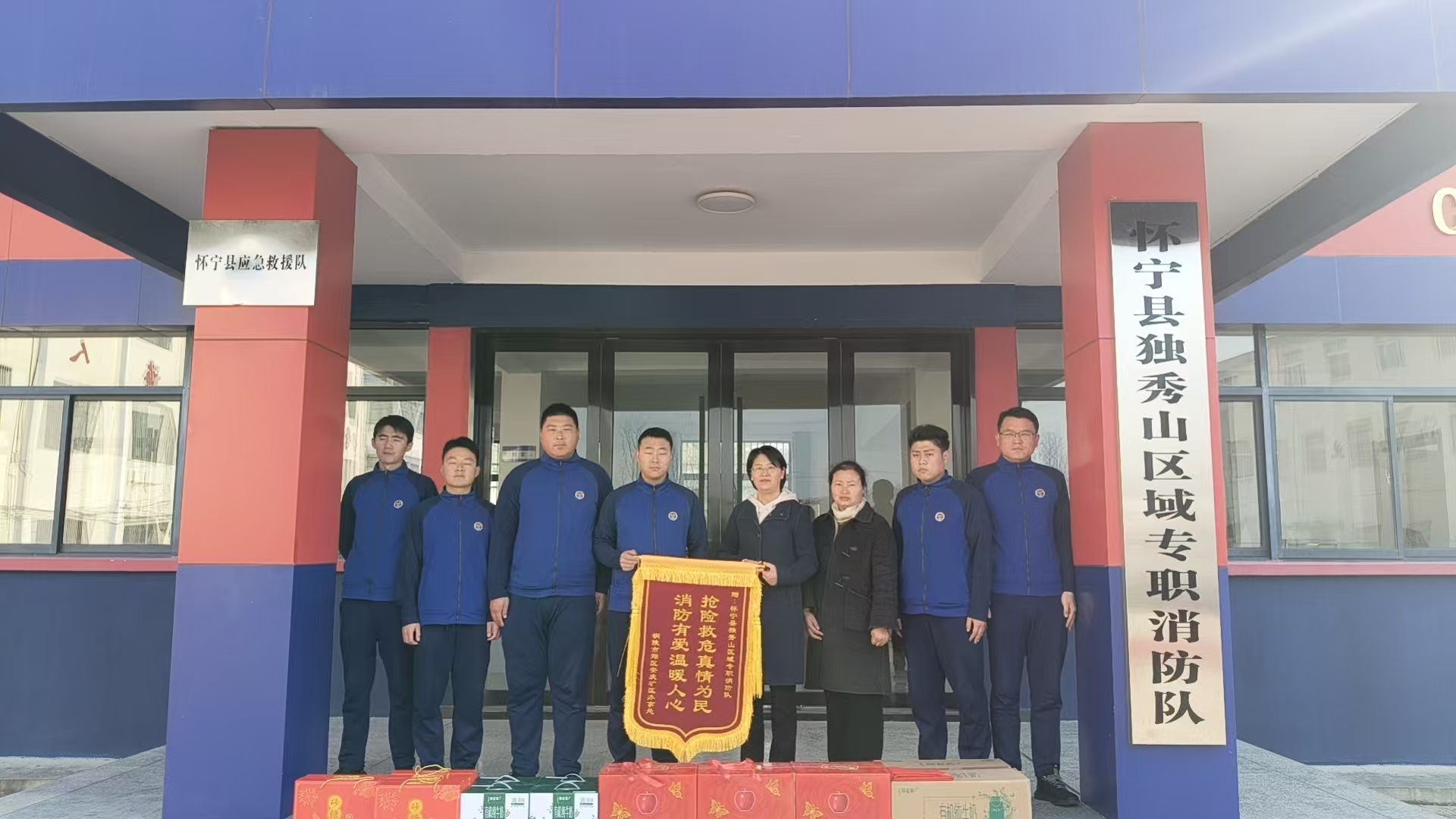 2026年1月15日上午,郊区安铜办主要负责人带队走访慰问怀宁县独秀山区域专职消防队全体指战员,为他们送去牛奶,水果等慰问品。