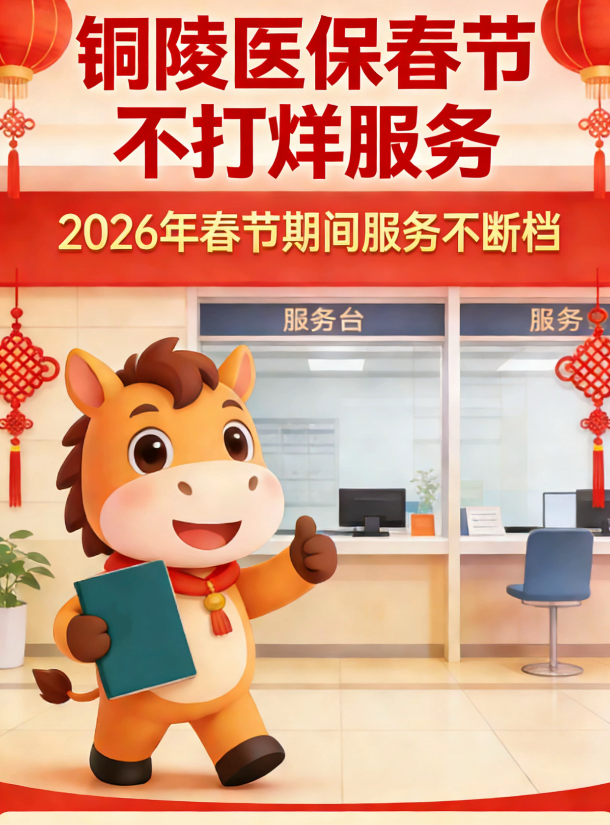 春节服务“不打烊”,医保保障伴您行。铜陵医保始终在您身边,守护每一份健康,陪伴每一个团圆!