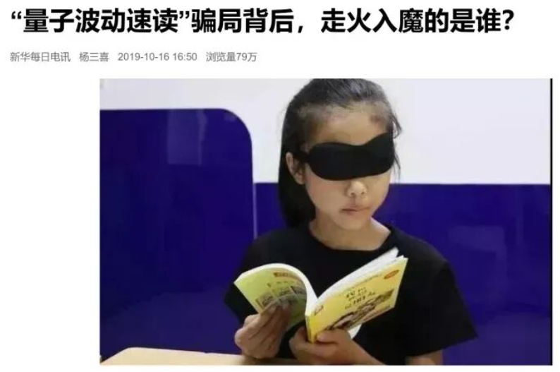 2019年,一则新闻引发舆论热议:某培训机构推出“量子波动速读”课程,宣称孩子只需快速翻动书页,即可在1至5分钟内读完10万字,甚至闭着眼睛也能感知内容,课程收费高达26万元。