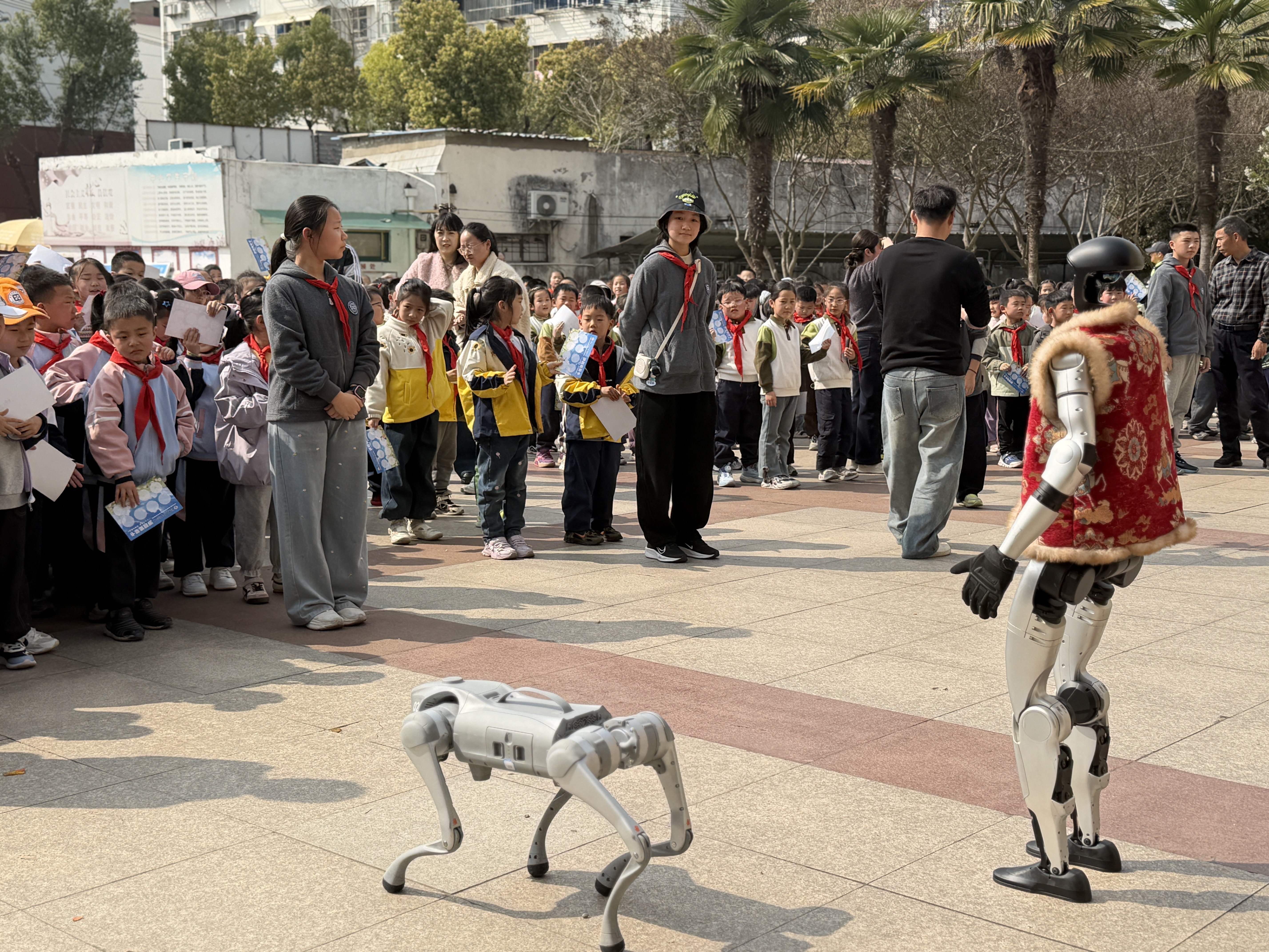 活动现场趣味十足,同学们有序参与游园打卡。科技馆带来的机器人、机器狗等智能设备闪亮登场,灵活的舞蹈、可爱的互动引得孩子们阵阵欢呼。在各个气象体验摊位上,大家通过趣味闯关、动手小实验、实景观测等形式,近距离认识风、云、雨、雾等气象现象,在玩中学、学中乐。